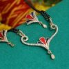 Multicolor Gold Plated Traditional American Diamond Stone Mangalsutra has a black chain with white stone and meenakari in the locket and lining above. Swarna Mangalsutra is a creatively designed piece of jewelry, a simple, sober ornament used on your wedding day.