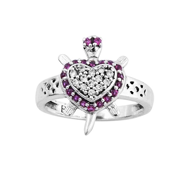 - Here we have a beautiful high polished heart cut tortoise ring. It is adorned with luminous stones that render it classy. The Pink Sapphire gems around Heart shaped shell of tortoise has been expertly designed for maximum beauty of this masterpiece ring.