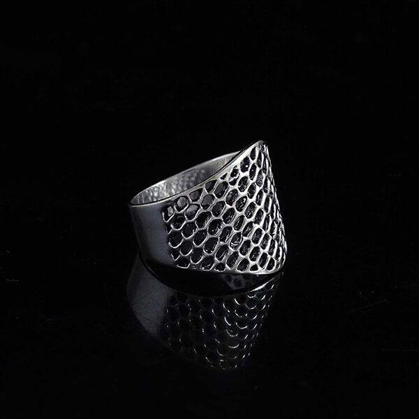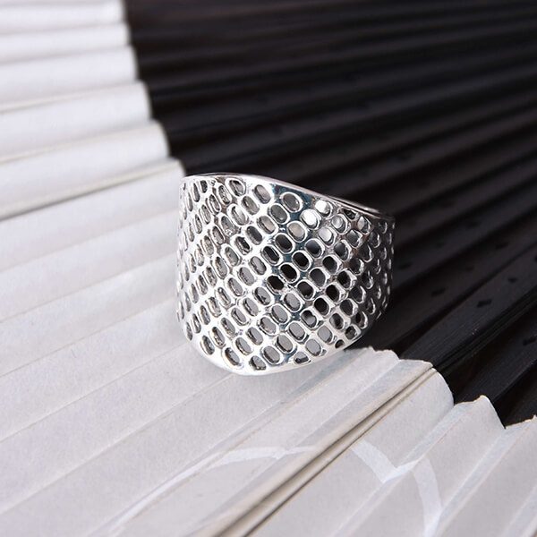 - This thick band ring in sterling silver features a beautifully textured Jaalidar design that is polished to shine on your finger. Team this with your favorite casual or office attire and make some eyes struck to your hands.