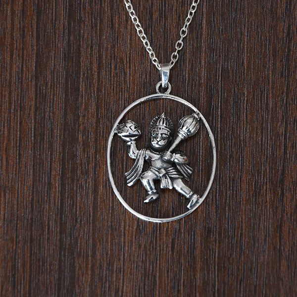 Oxidized Finishing Lord Hanuman Silver Pendant