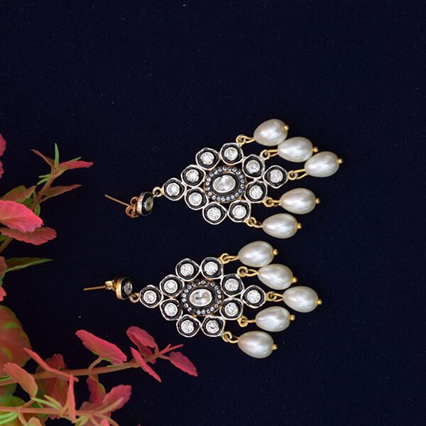 Flash Gold Plated | Fashion White Zircon Pearl Stone Meenakari Design Dangle Earring