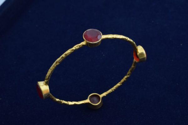 Get this Golden textured handcuff with red stone and flaunt with your western and traditional look.