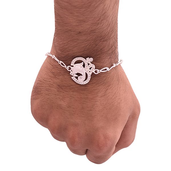 Fashion | Ganesha Silver Platting White American Diamond Stone Rakhi Bracelet
