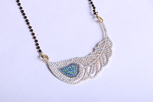 Fashion Feather Blackbeads Chain Mangalsutra American Diamond Stones Jewellery