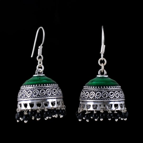 Fashion Green Meenakari Silver Plated Oxidized Earring