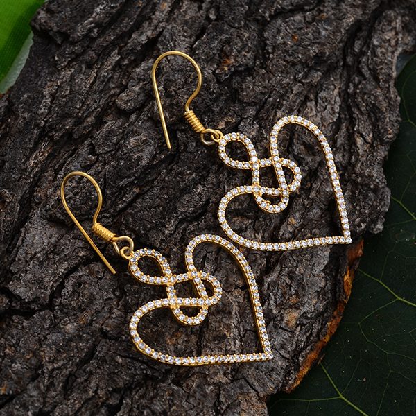Celtic Knot Heart Flashgold Plating American Diamond Silver Earring