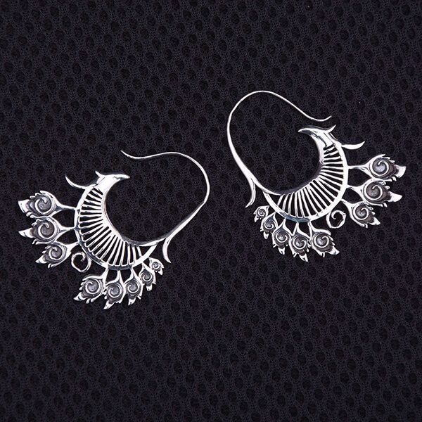 Oxidized Spiral Hoop Silver Earring