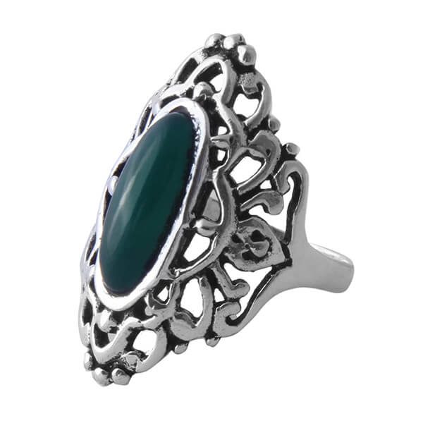 - This classy and bold oval shaped Green stone on oxidized silver are a must have. Get yours now.