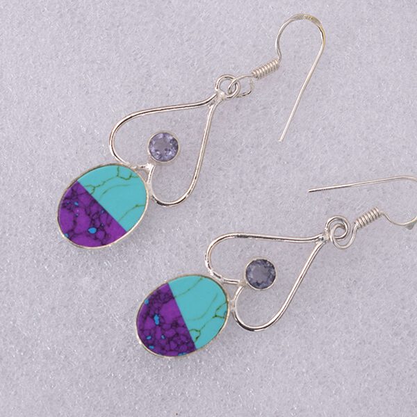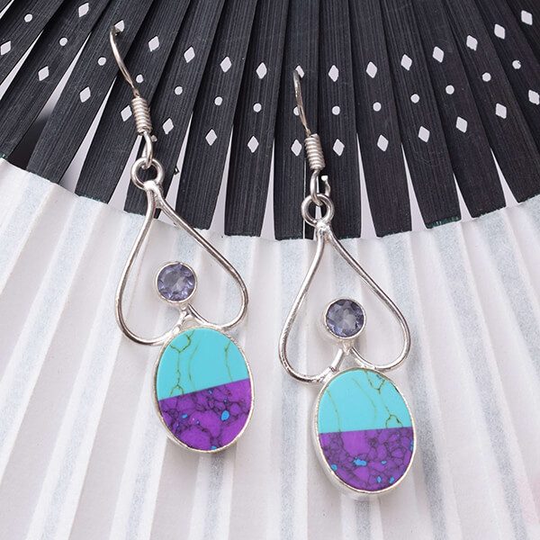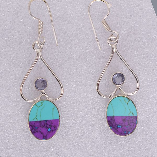 Fashion Heart Shape Design Amethyst And Turquoise Gems Earring