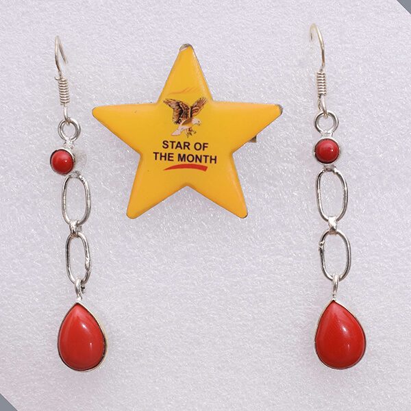 Brass Fashion Red Coral Earring Simple
